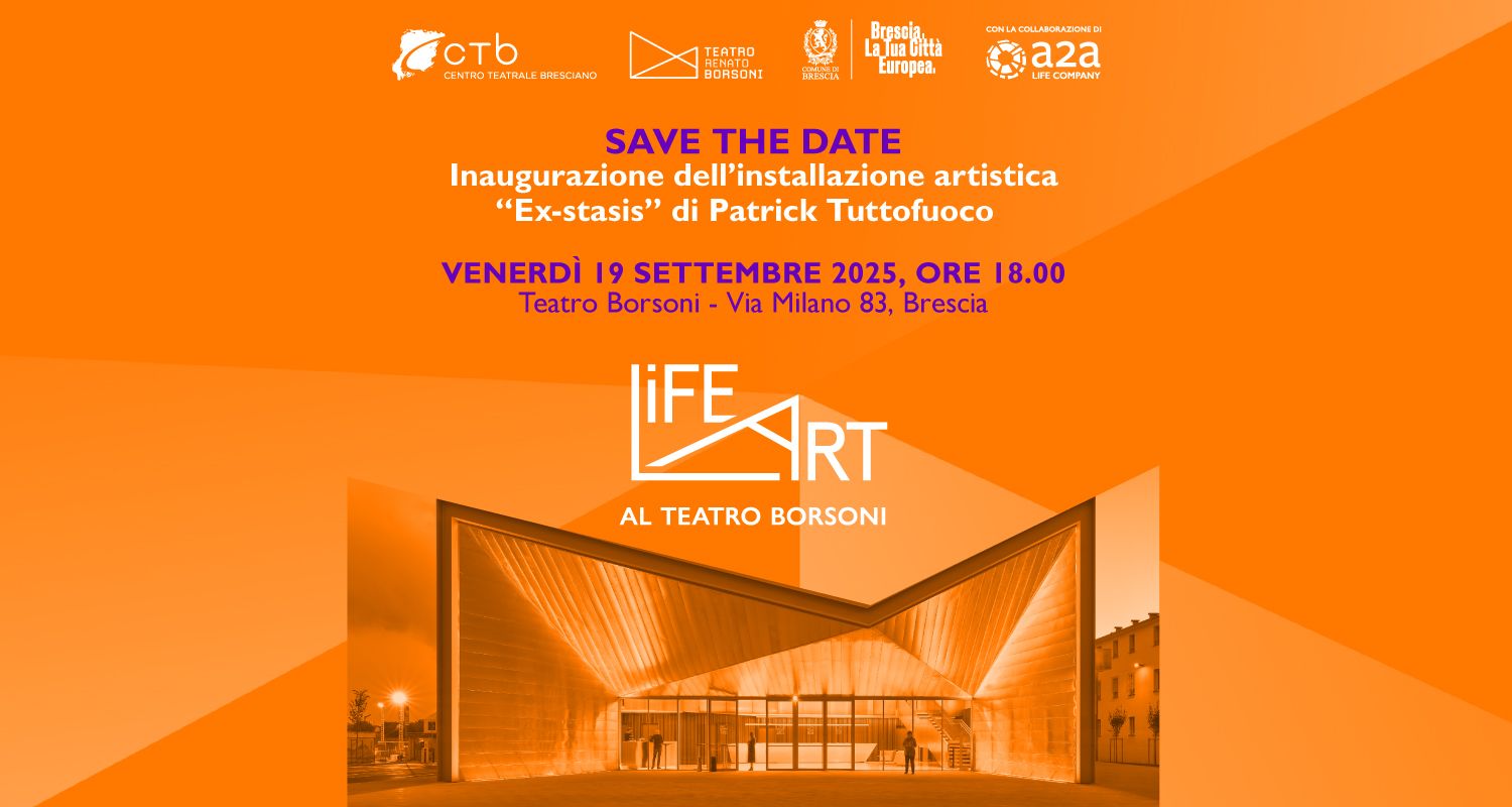 Venerdì 19 settembre sarà il cuore dell’iniziativa: in occasione del primo compleanno del Borsoni verrà svelata l’opera Ex-stasis di Patrick Tuttofuoco, vincitrice della call “Life Art al Teatro Borsoni. Energia creativa per Brescia. La Tua Città Europea”, promossa da Centro Teatrale Bresciano, in collaborazione con Comune di Brescia e A2A, con la curatela di Valentina Ciarallo. L’installazione artistica (selezionata tra i 146 progetti pervenuti) è destinata a diventare un patrimonio permanente del quartiere di via Milano negli spazi esterni del teatro. Un nuovo tassello all’identità di questo luogo di cultura che ha come sfida primaria l’interpretazione e l’ascolto del quartiere in cui sorge.
