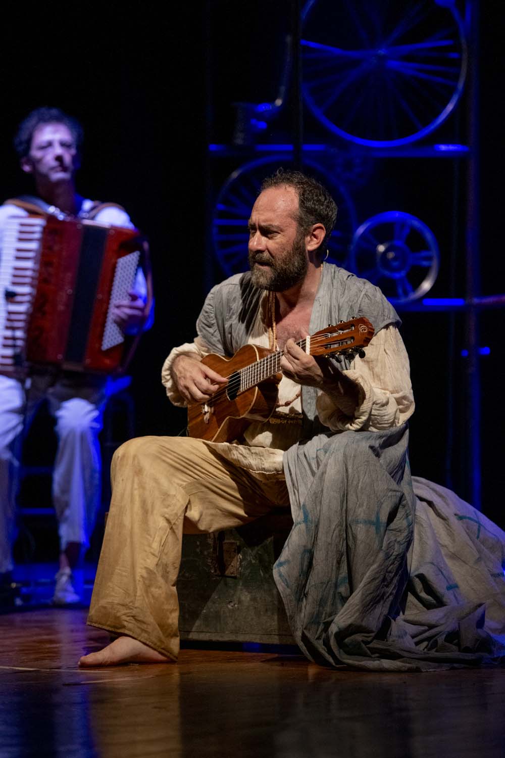 Mario Incudine è il protagonista di questo emozionante spettacolo. Con la sua carica ed energia, recita e canta sul palcoscenico – sostenuto dalla musica dal vivo del bravissimo Antonio Vasta – per raccontarci la storia di un uomo divenuto immortale.