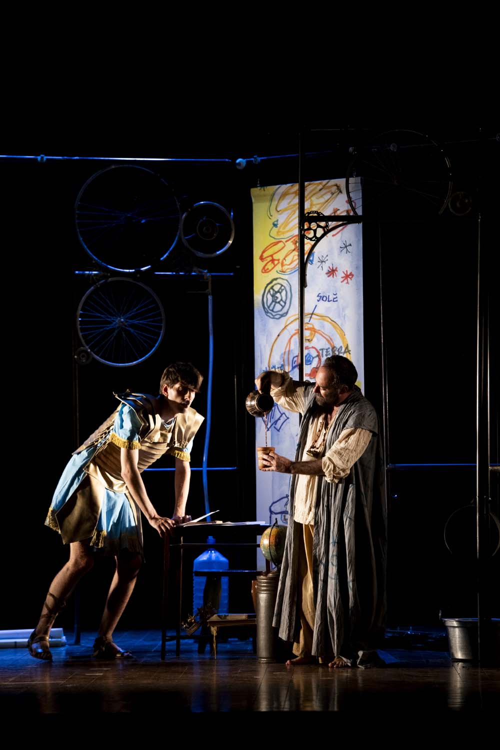 Nel testo di Costanza Di Quattro, in un alternarsi di leggende e verità, Archimede è protagonista di un monologo che riflette sul mondo e sulla distanza incolmabile tra chi cerca giustizia e chi si nasconde dietro ipocrisie e ambiguità. Mentre i romani, con la forza, schiacciano Siracusa, lui rimane ancorato alle sue idee, cercando di comprendere il senso di un’esistenza che, pur segnata dalla grandezza, è anche punteggiata dalla solitudine e dall'incomprensione. La sua visione scientifica è un riflesso della sua lotta interiore: il desiderio di fare giustizia, di comprendere le leggi della natura, si scontra con l'incapacità di essere accolto e compreso dal mondo che lo circonda.